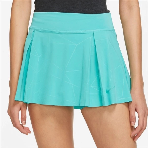 Inspired by the classic Wind runner jacket, the new Nike Court collection evokes the streamlined silhouette while simultaneously incorporating sleek lines and asymmetry. The Nike Court Club skirt has relaxed flowy pleats, understated embossed geometric pattern, and style with geometric print, built-in shorts.